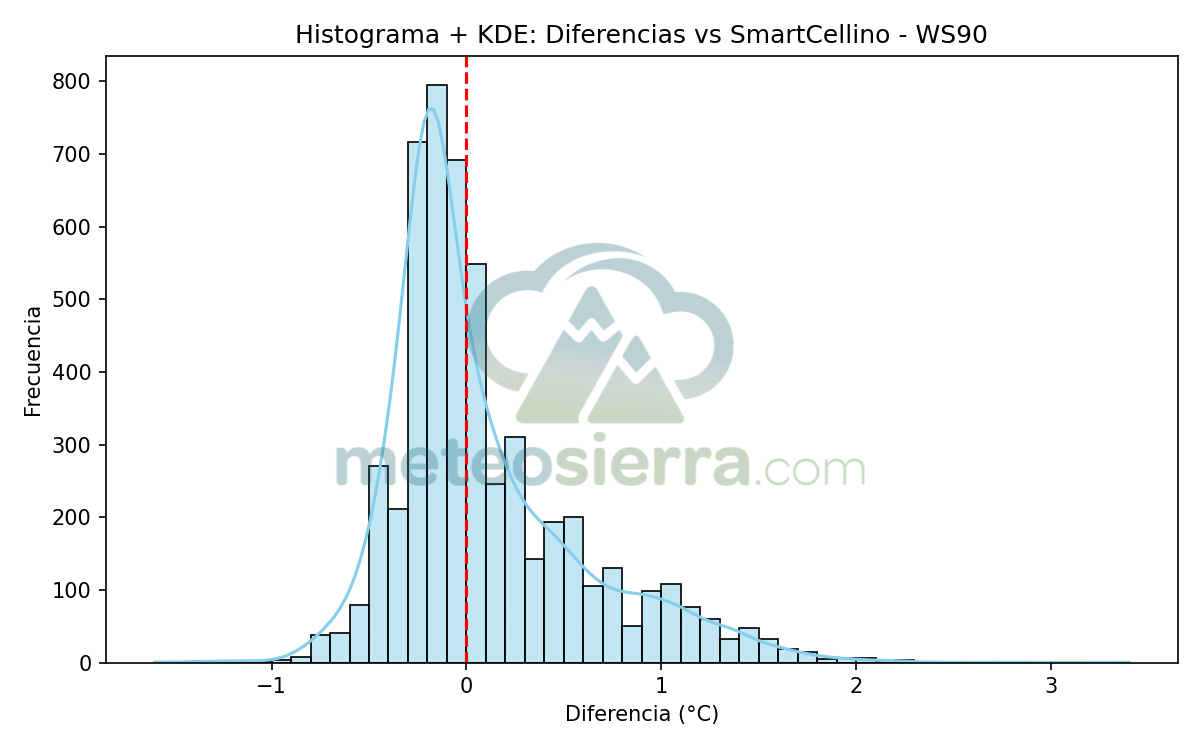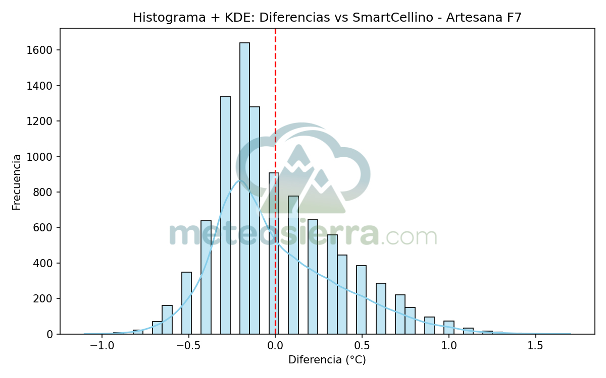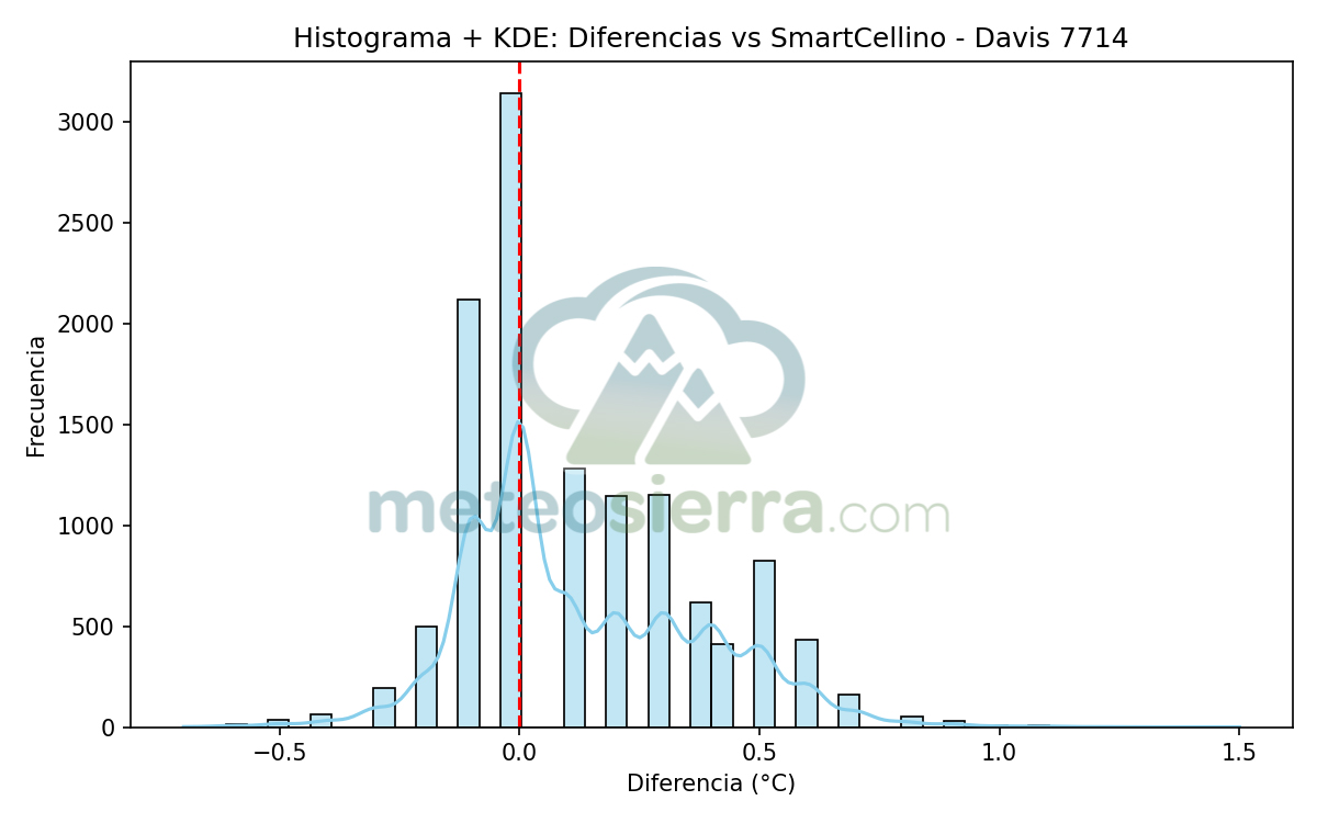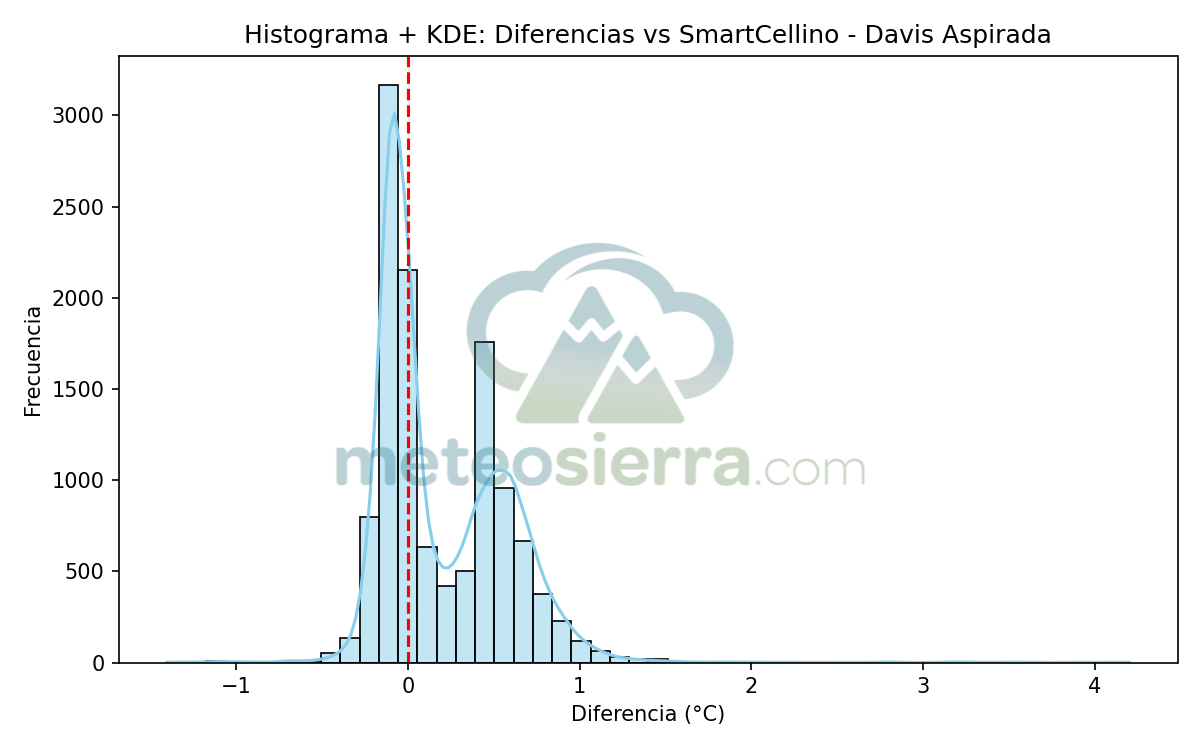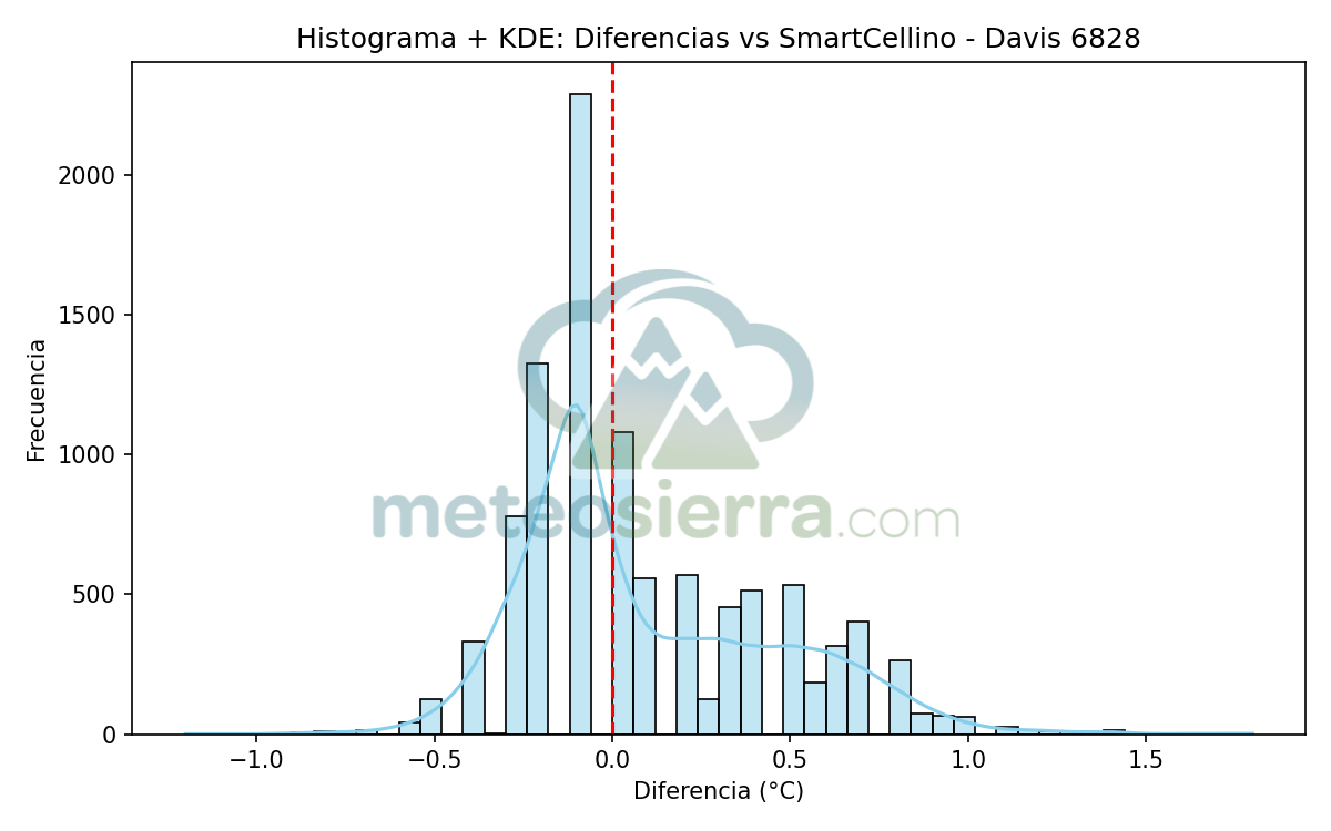 Los histogramas son una herramienta muy útil para visualizar la distribución de los errores de cada garita respecto a la referencia SmartCellino. En ellos se agrupan todas las diferencias de temperatura registradas durante el periodo de estudio, permitiendo observar de un solo vistazo cómo se comporta cada modelo frente a las condiciones reales.